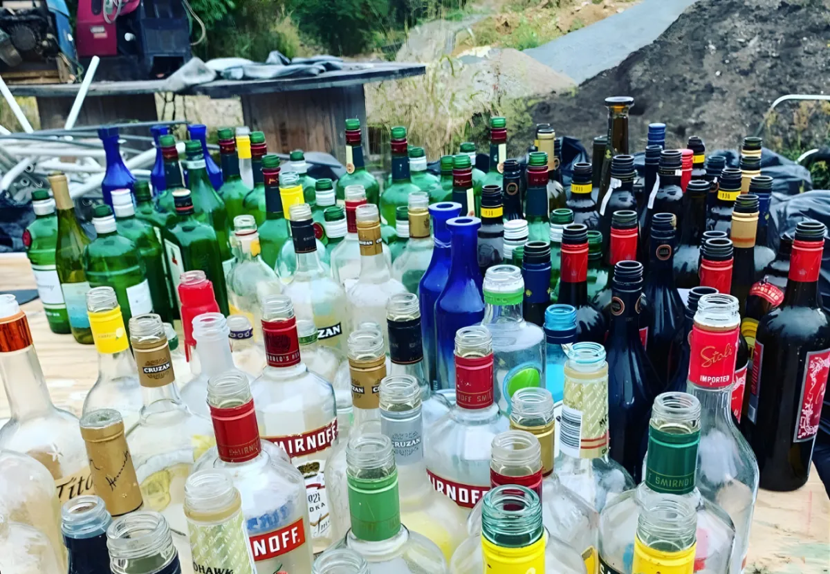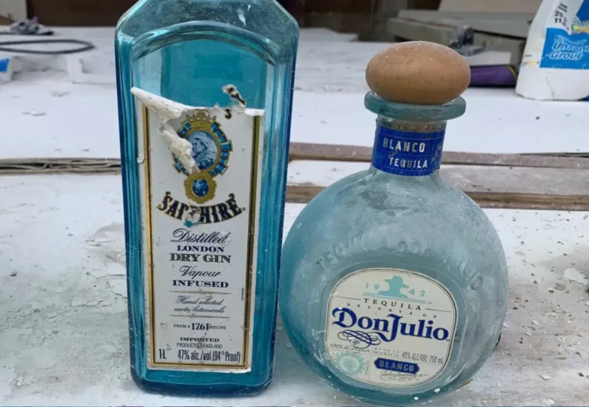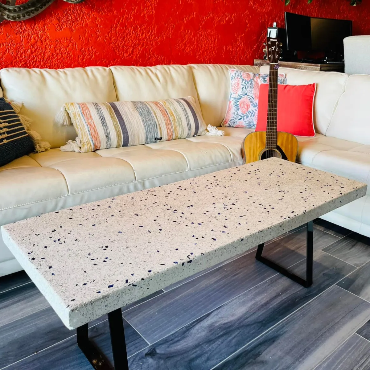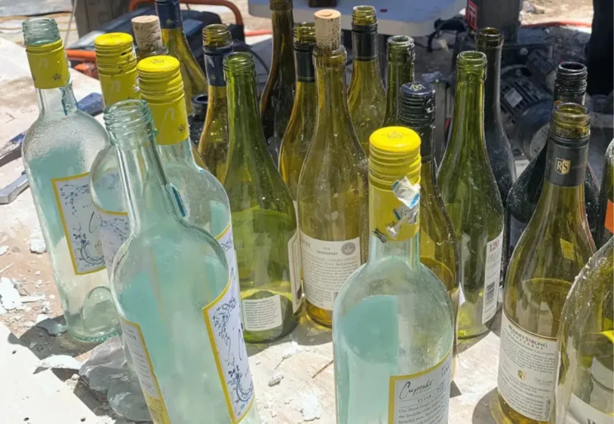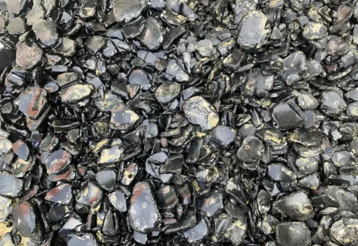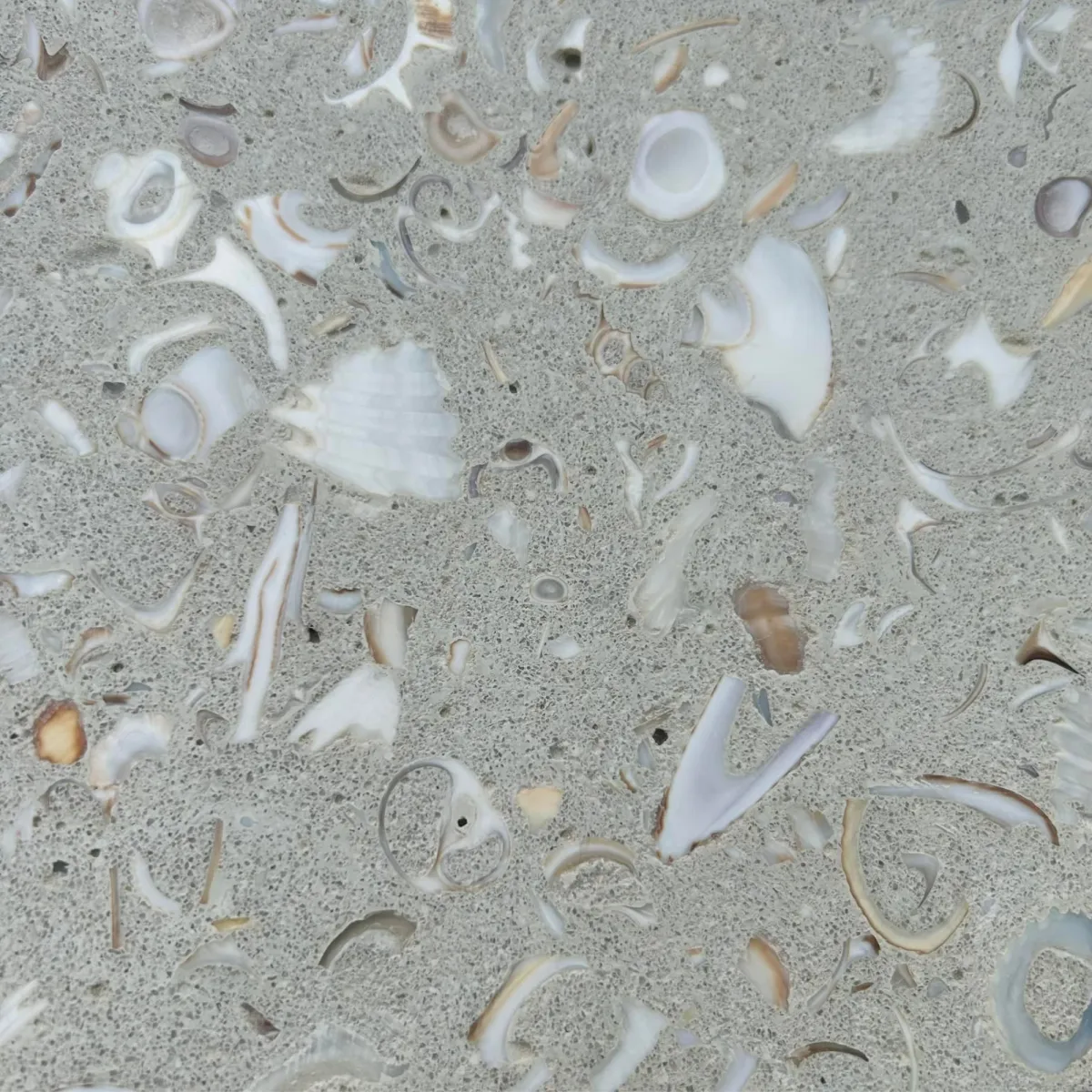 The glass used in each slab is carefully selected to create beautiful mixes inspired by the Caribbean environment. Different bottle types produce different tones and textures, resulting in unique color combinations.